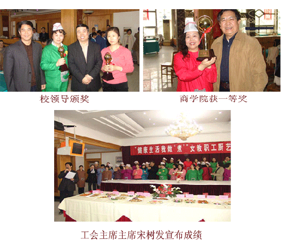 这是校工会首次举办厨艺大赛,全校各分会都派出了最强阵容,不仅有女教职工,也吸引了许多男教工前来助阵。大家在赛前研究制定菜谱,切磋烹饪技术,了解食物营养搭配的科学知识,为比赛做了充分的准备。本次比赛要求在限定时间内完成“规定菜”和“创意菜” 2 种菜品的烹制。赛场气氛热火朝天,人声鼎沸,十分热烈,从洗菜、切菜、配菜到煎、炒、烹、炸,大家忙得不亦乐乎。当一盘盘色香味俱全的菜肴呈现在桌上时,让大家赞不绝口,垂涎三尺。评委分别从色、香、味、形、刀工、创意、营养搭配、家庭实用等方面进行评分。最后,商学院获得一等奖;后勤产业,饮食集团联队,国际教育与交流、 TF 合作学联队获得二等奖;生食学院、机械学院、机关一与机关二联队、公共管理学院、高继学院联队、外语学院获得优秀奖。